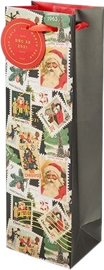 Producer Holiday Vintage Stamps Single Bottle Gift Bag